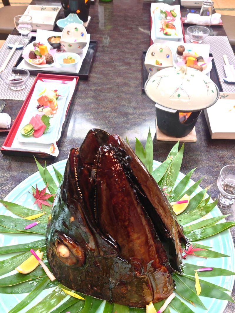 マグロの兜焼き 先日、忘年会を兼ねて鶴巻温泉の大和旅館に行って泊まってきた。そして出てきた料理がマグロの兜焼きで、これが非常に美味しかった。もちろん味だけではなく、その形や大きさにも驚き感動した。マグロの兜焼き以外も新鮮な刺身など充分で美味しい料理が出てきた。これで1人2万円を切っており、これはオススメ。